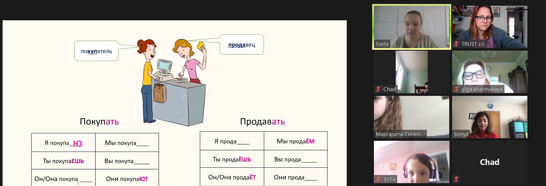 Russian for Adults (complete beginners, intermediate and advanced levels).